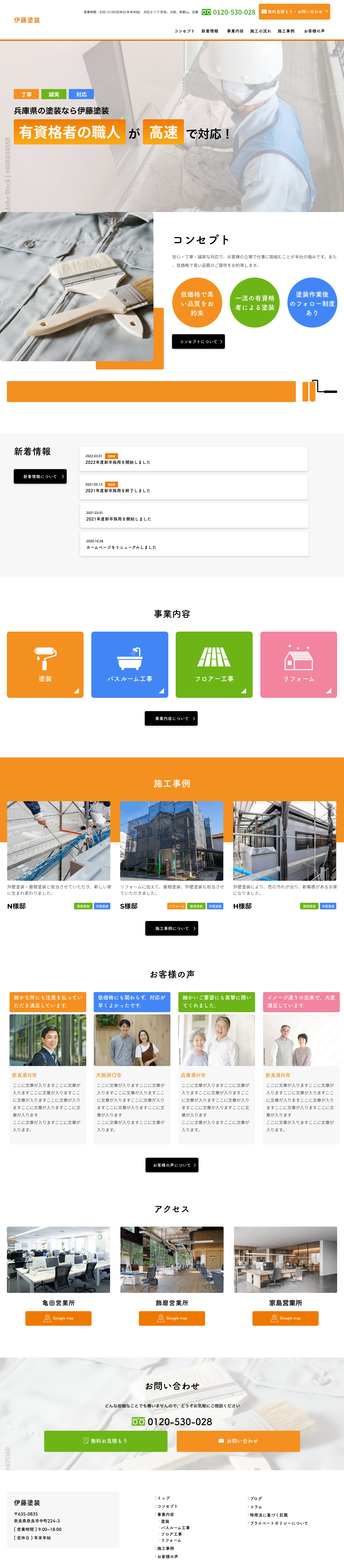 明るい=遊び心があると考え、ユーザーに塗装会社を連想させるため、塗装ペイントのアイコンを最初のセクションに配置しました。